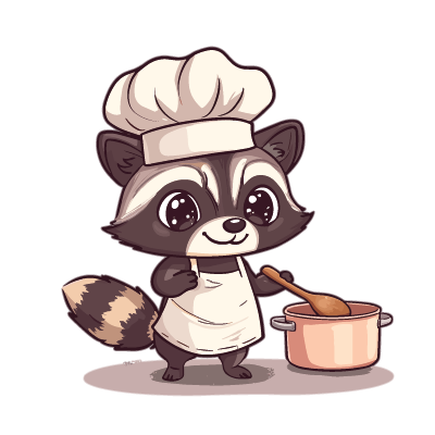A charming raccoon dressed as a chef, stirring up delicious creations with a big smile