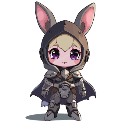 🐰⚔️✨ A brave little warrior with bunny ears, shining armor, and a touch of magic 💜🐾👑 Ready to hop into action!