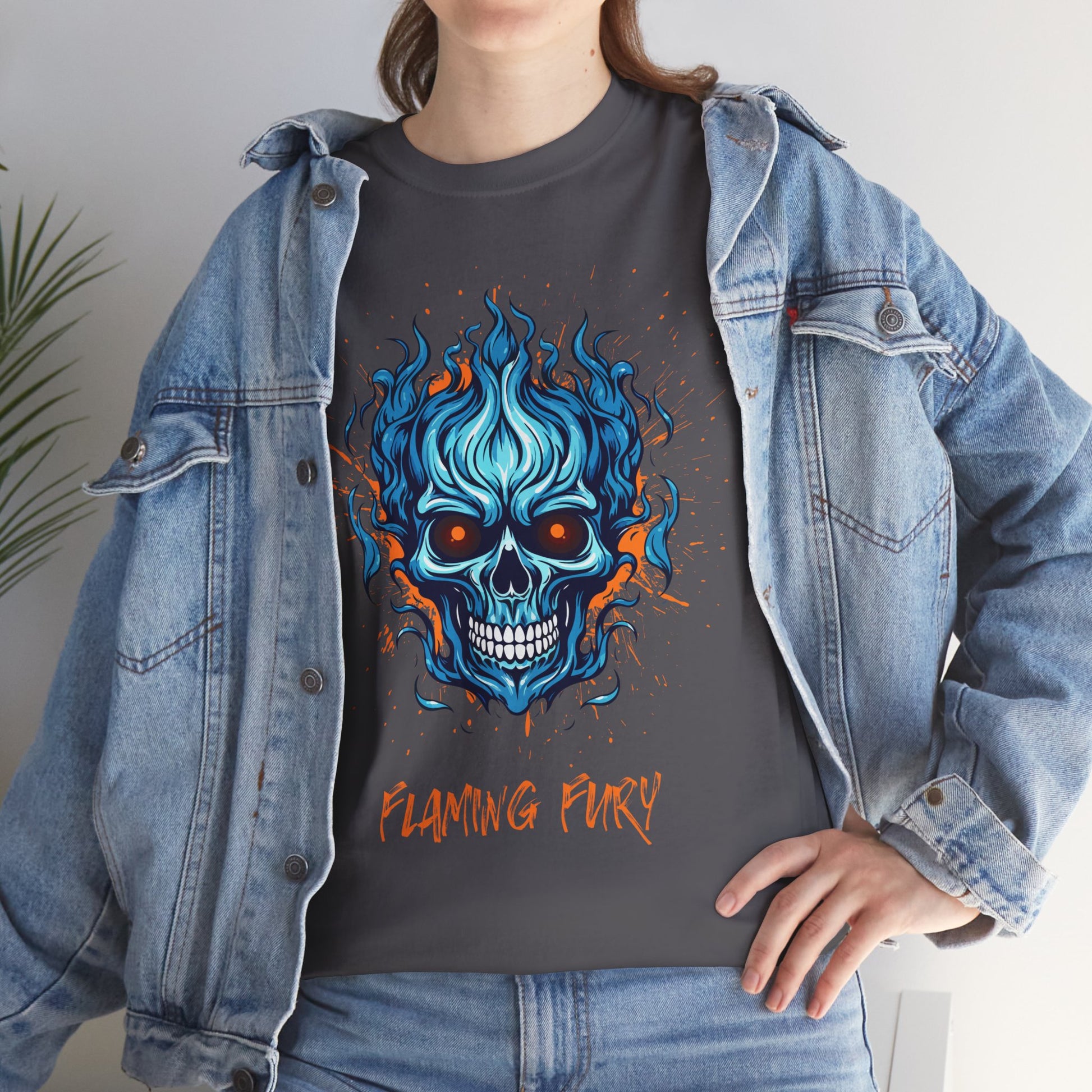 Flaming Fury T-Shirt exudes a bold and fiery vibe, perfect for those who love to make a statement with their clothing. This tee is ideal for casual outings, concerts, festivals, and any occasion that calls for a pop of vibrant energy. It is great for adults looking to express their unique style and stand out from the crowd.