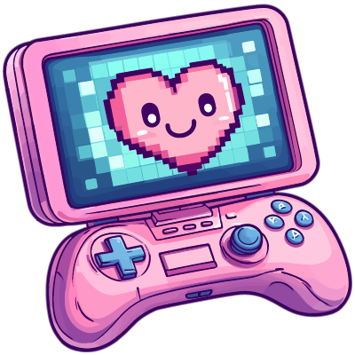 Gaming console with a screen displaying a pixelated heart with a smiling face.